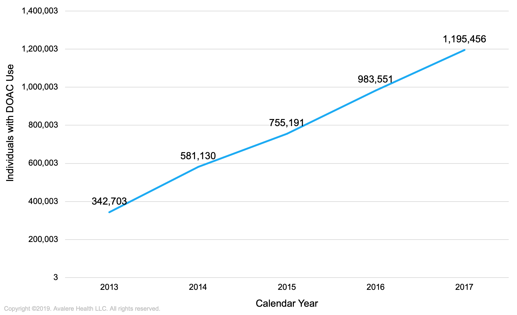 Avalere evaluated trends in direct oral anticoagulant (DOAC) use in a 100% sample of the Medicare fee-for-service (FFS) population with stand-alone Part D coverage and the characteristics of the patients initiating DOACs.
