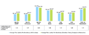 *Liability ratio is equal to the average plan liability per beneficiary for enrollees taking donepezil or memantine divided by the average plan liability per beneficiary across all enrollees in the plan segment.