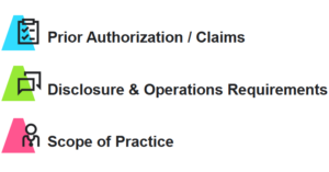 Prior authorization/claims laws govern how health plans manage their utilization management or claim processing programs. State legislation and oversight of prior authorization varies across states, and most often span across Medicare Advantage, Medicaid, Exchange, and Employer Sponsored Insurance. Most of the laws in this category limit the extent to which a plan can include this technology in reviewing claims or prior authorizations. Some states specifically restrict the use of AI and algorithms as the sole source of adverse determinations. Other states require that a licensed physician make final adverse determinations and not specifically mention the use of AI or algorithms. Regardless of whether the regulation names AI specifically, these regulations have a direct impact on the use of AI tools.